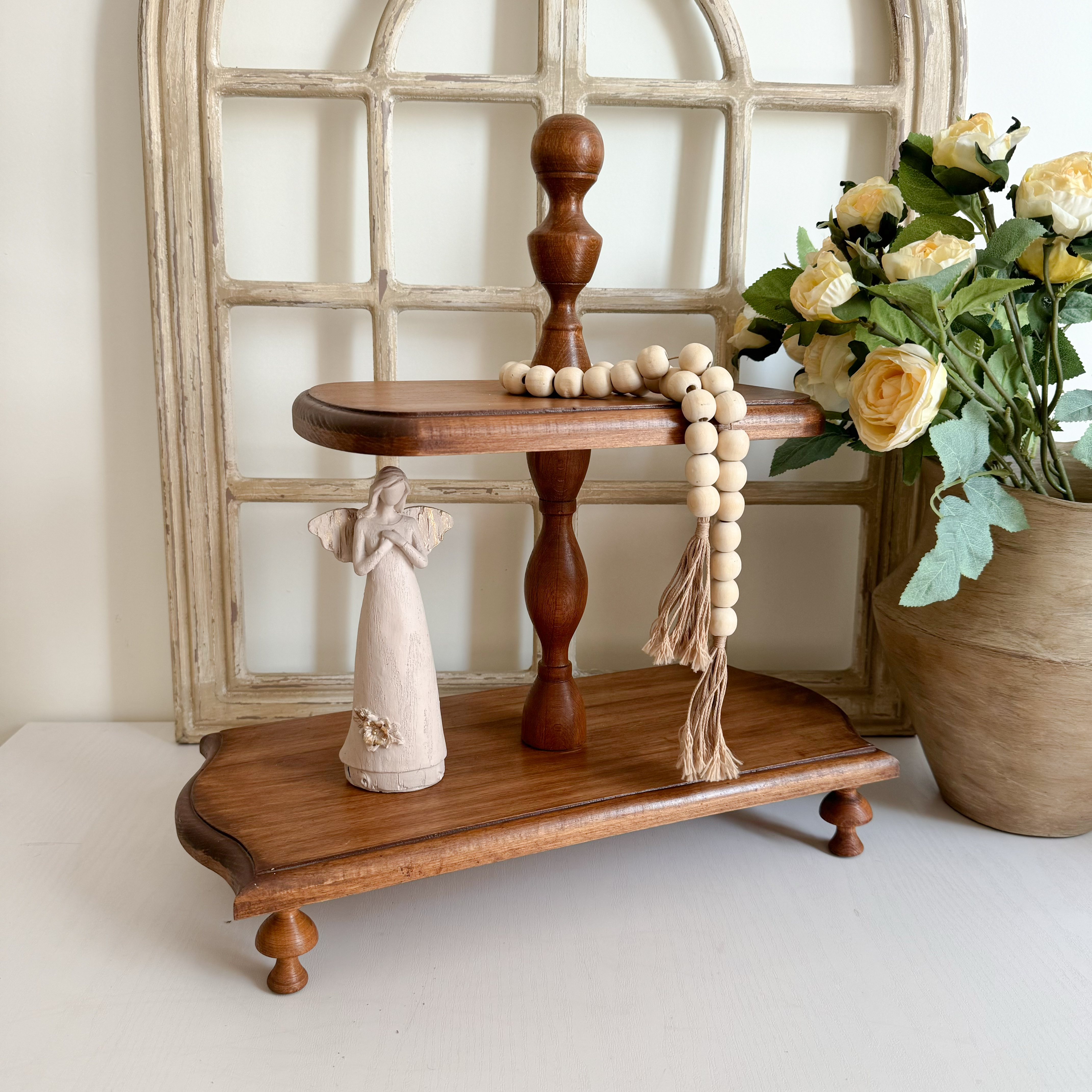 ساخته شده از چوب راش گرجستان با پوشش گیاهی و قابل شستشو ،ابعاد صفحات ابعاد۲۰/۴۵سانتیمتر ۱۸/۳۰سانتیمتر فاصله بین طبقات ۲۰ سانتیمتر و ارتفاع کلی تقریبا ۴۴سان میباشد
