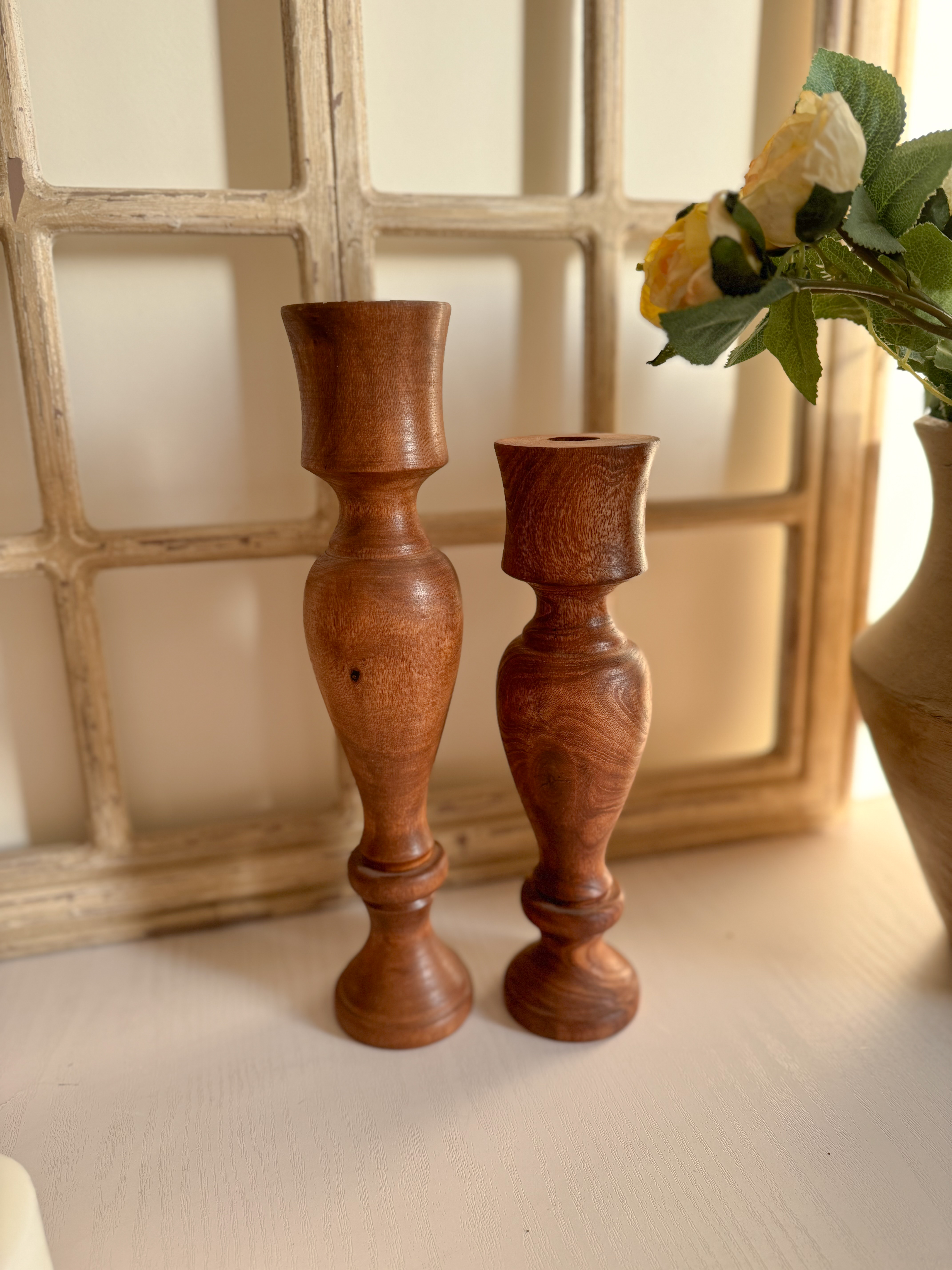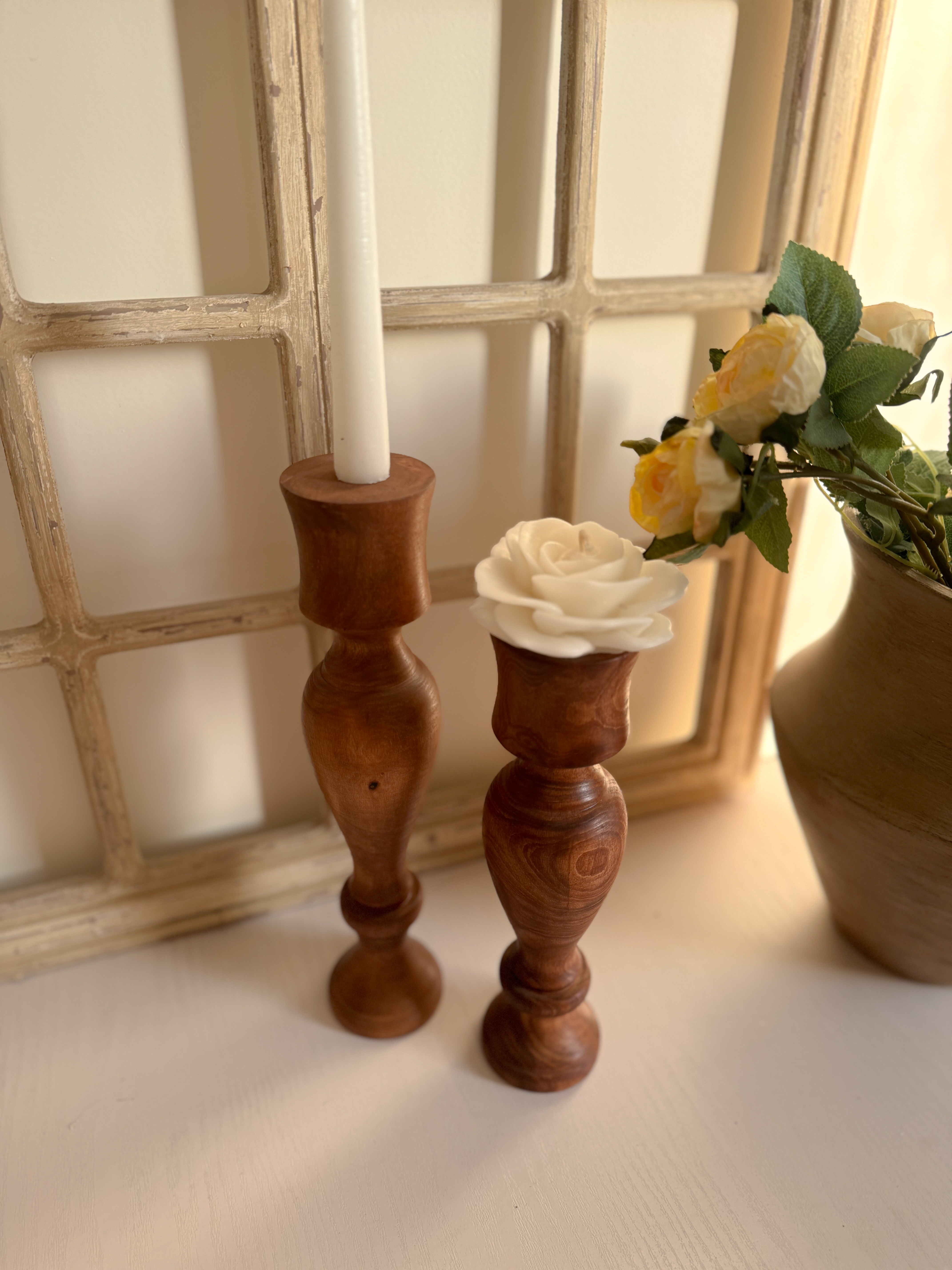 ساخته شده از چوب چنار می باشد با دو ارتفاع۲۵ـ۳۰سانتیمتر می باشد سه مدل شمع قلمی،استوانه و گل رز قابل استفاده می باشد.جاشمعی یکی از مهمترین دکوری هر خانه می تونه باشه که کلی حس خوب القا میکنه ویک گزینه ماندگار و خاص برای هدیه دادن