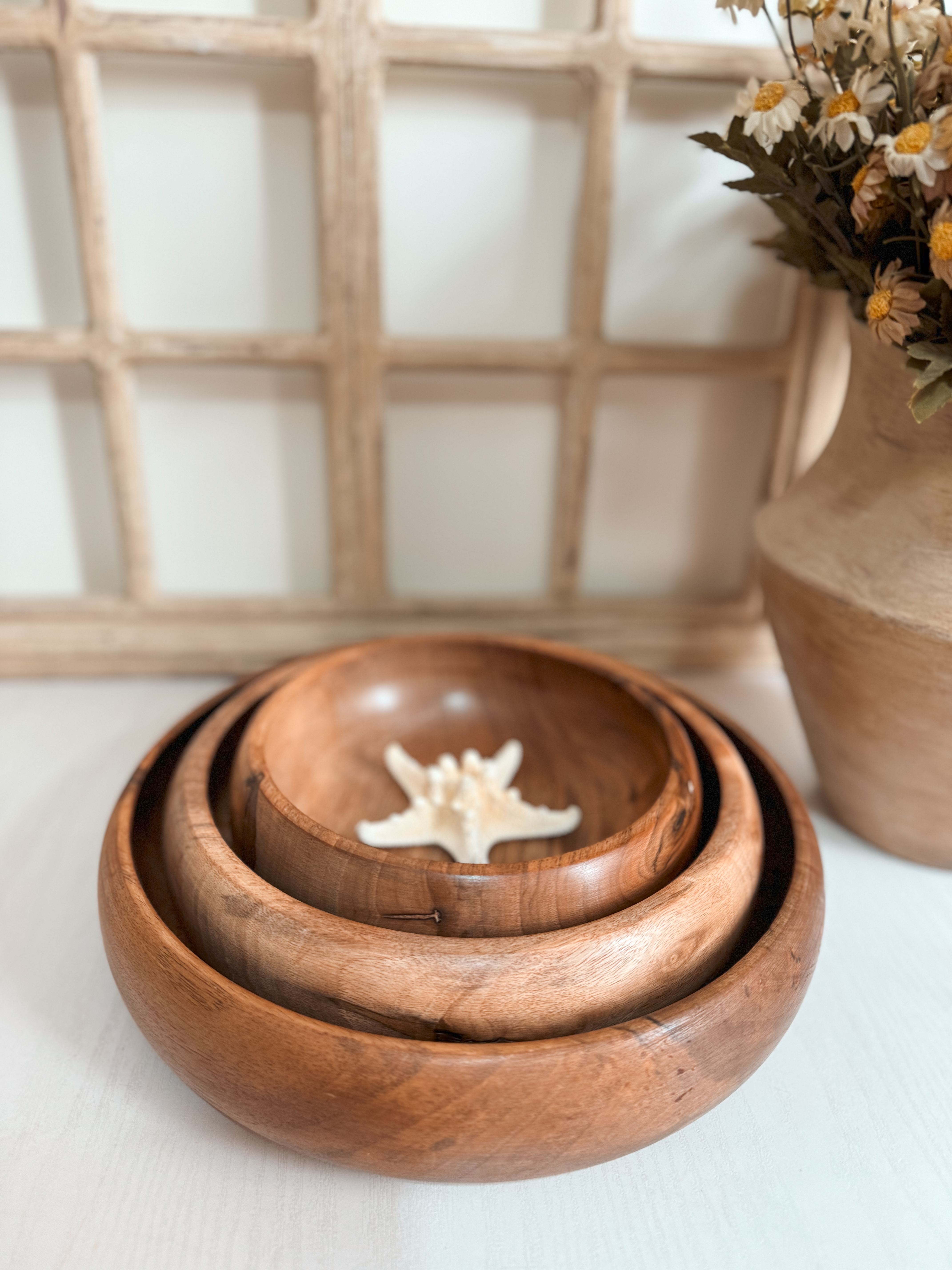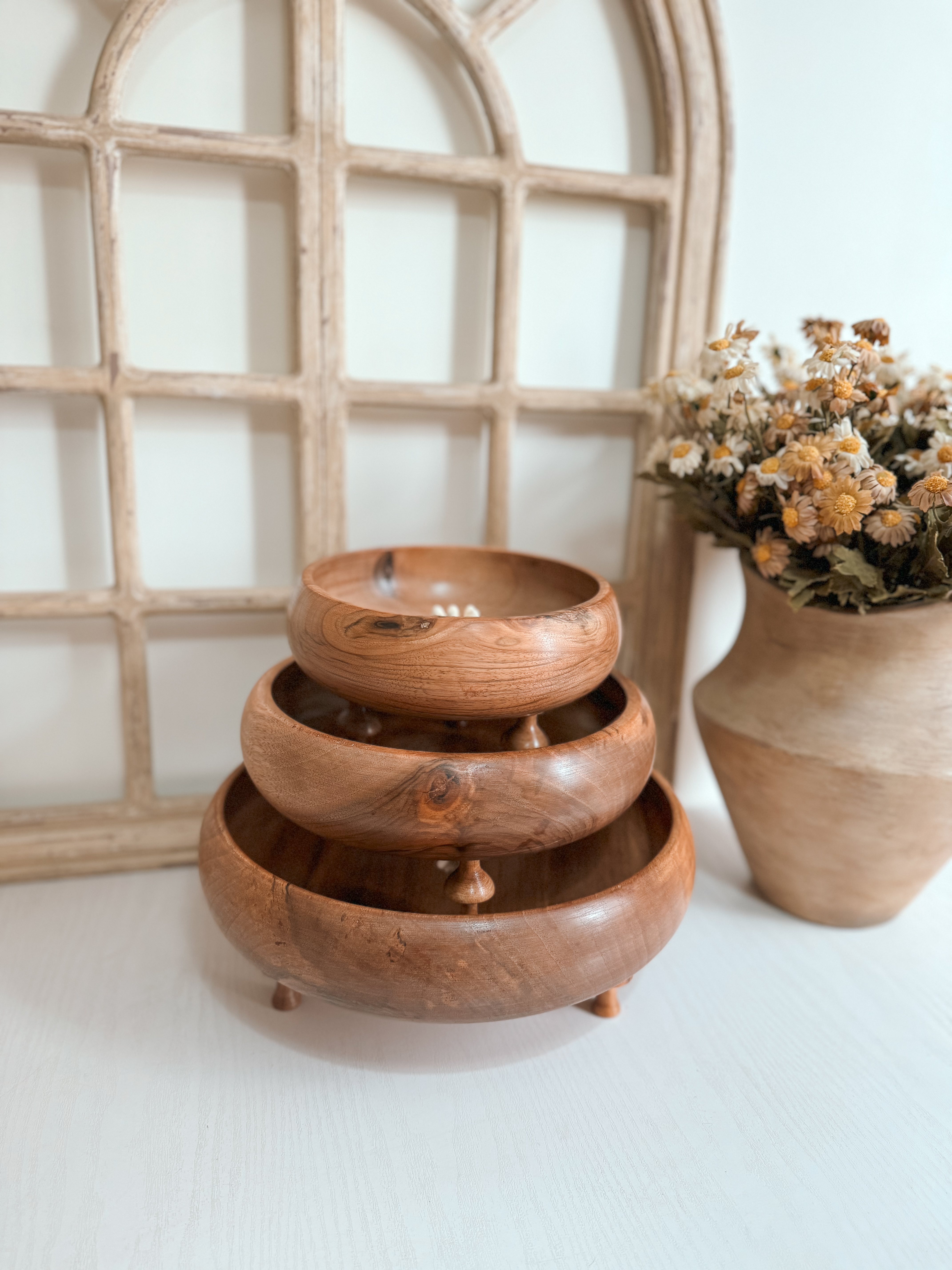 کاسه های خمره ای ساخته شده از چوب خوش نقش و مقاوم گردو با پوشش گیاهی و آب گریز می باشد دارای سه سایز ۲۰/۲۵/۳۰ سانتیمتر می باشد.به دومدل بدون پایه و سه پایه قابل سفارش می باشد مناسب برای میوه،آجیل،شکلات،سالادو انواع سرو خوراکی های خشک می باشد