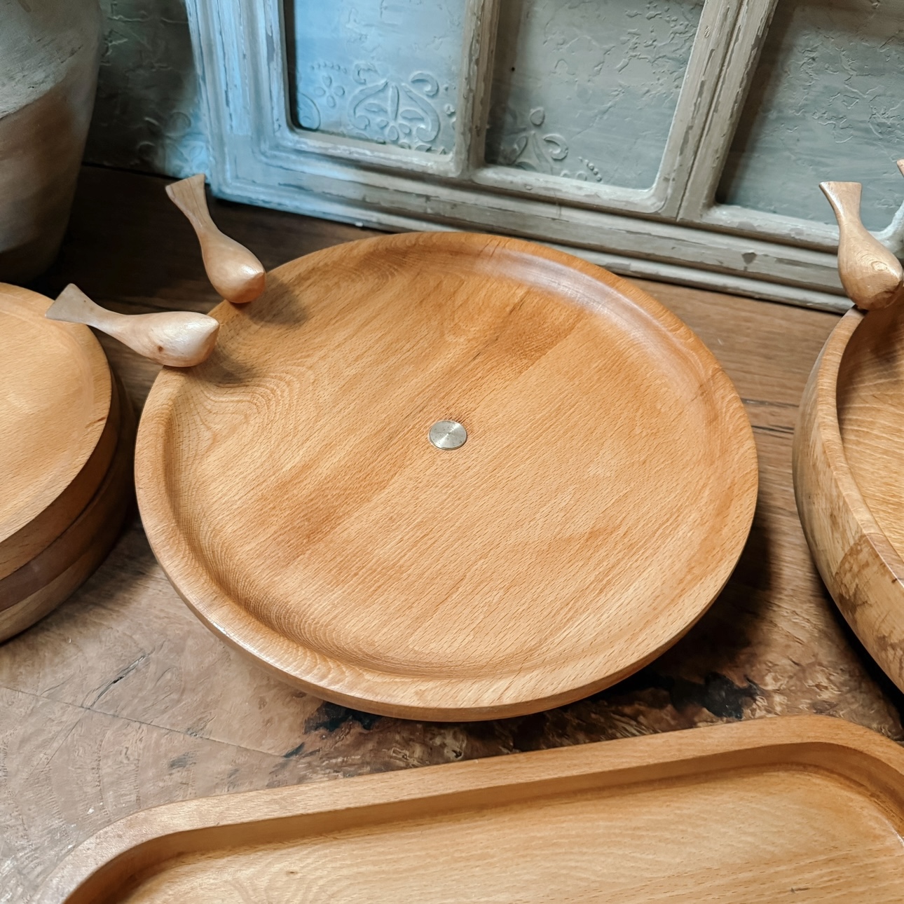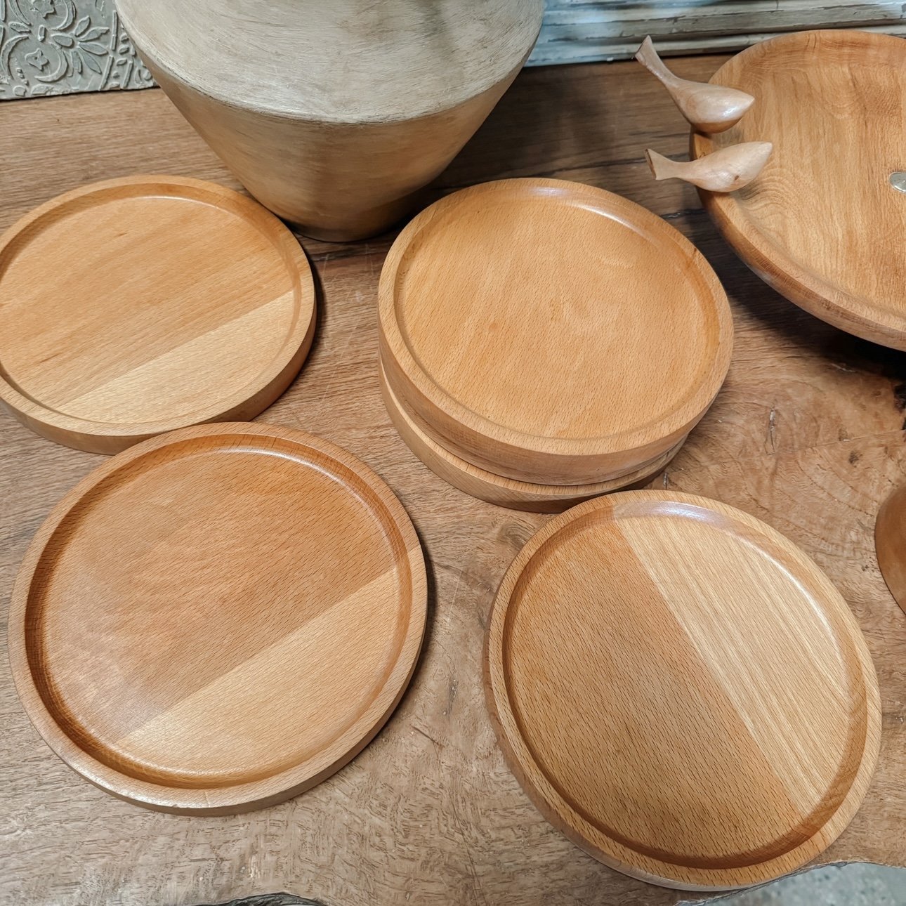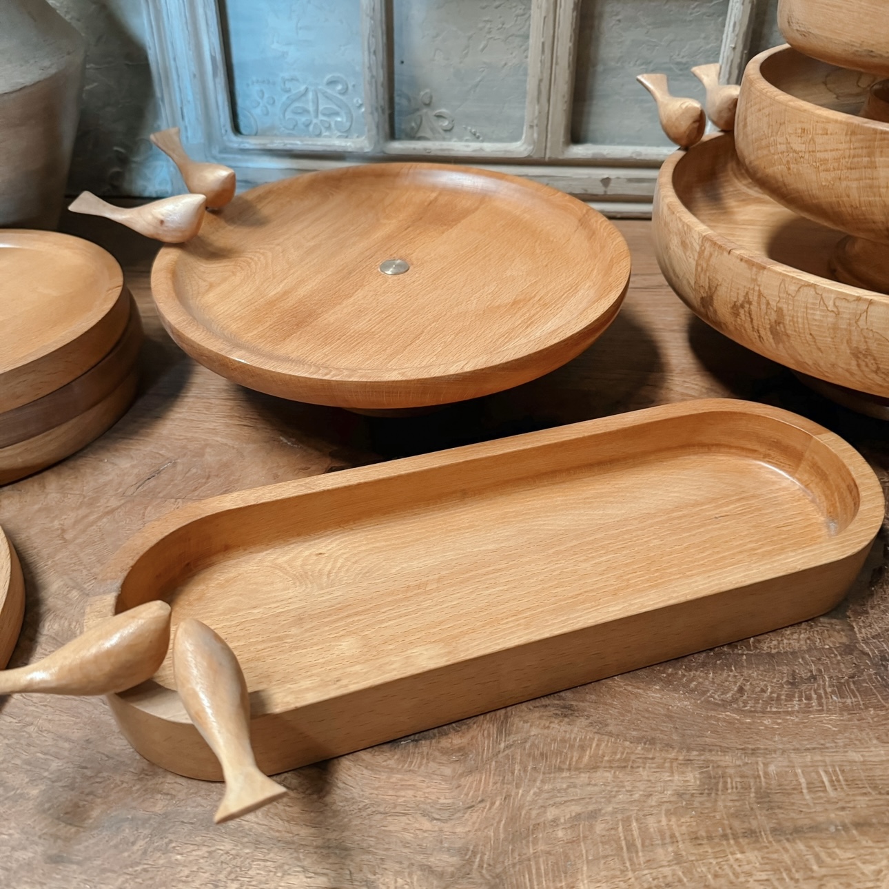 ساخته شده از چوب راش گرجستان با پوشش گیاهی و آب گریز می باشد این سرویس پذیرایی تشکیل شده از یک عدد شیرینی خوری قطر ۲۷سانت،میوه خوری به قطر ۳۰سانتیمترو آجیل خوری دارای قطر ۲۵ سانتیمتر به همراه یک شکلات خوری به قطر ۲۰ سانتیمتر و اردو بیضی به همراه ۶عدد پیش دست می باشد