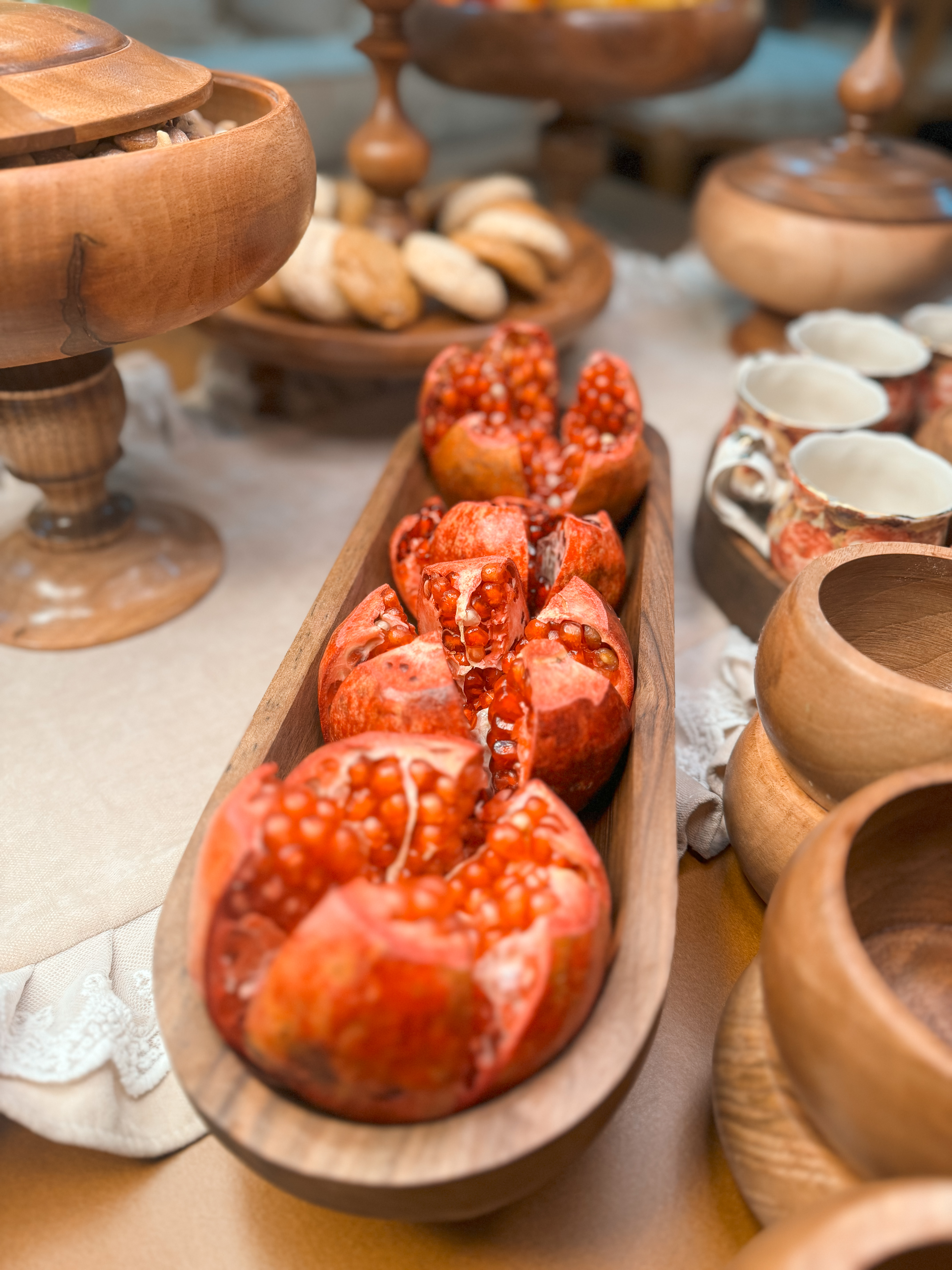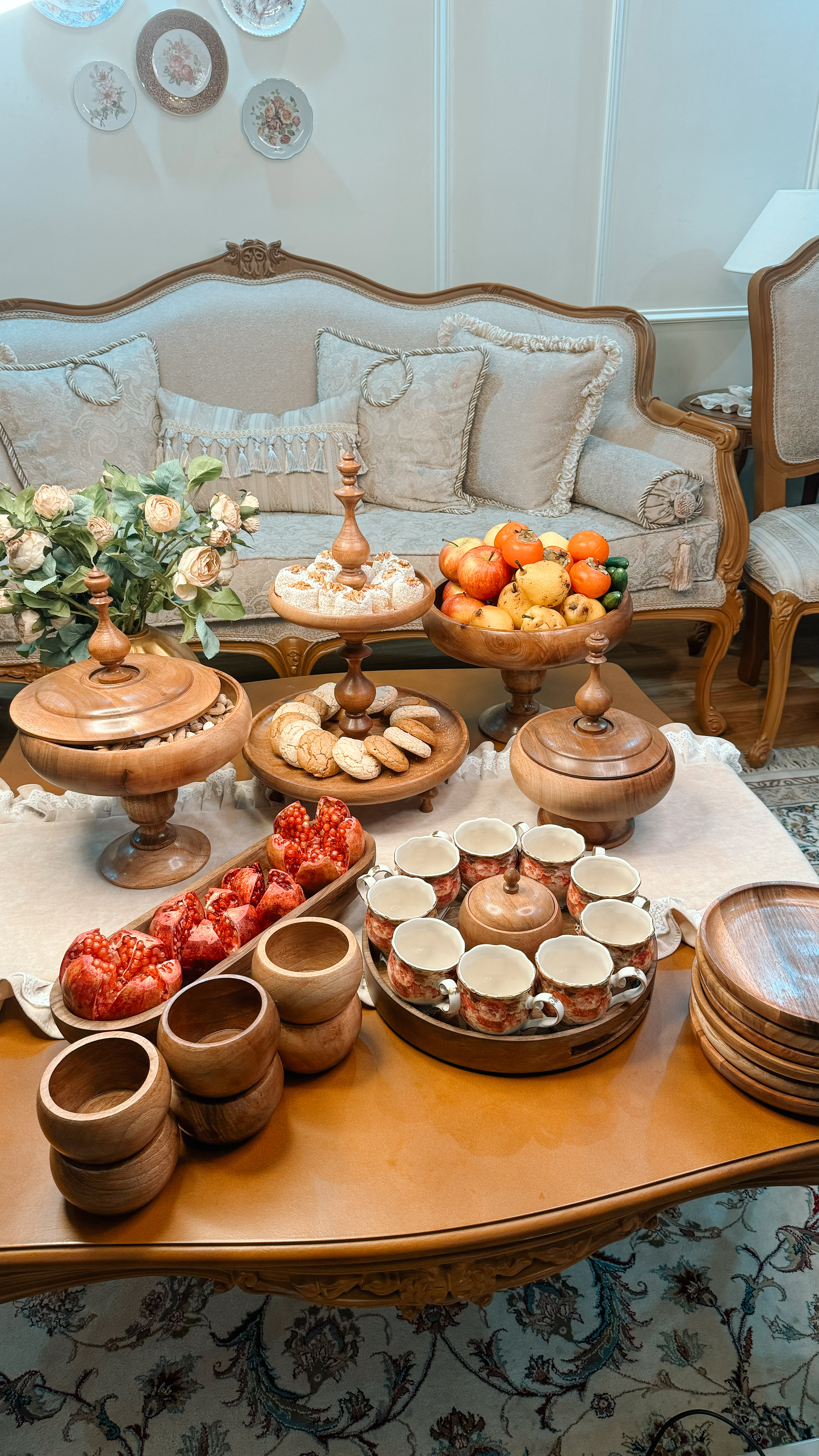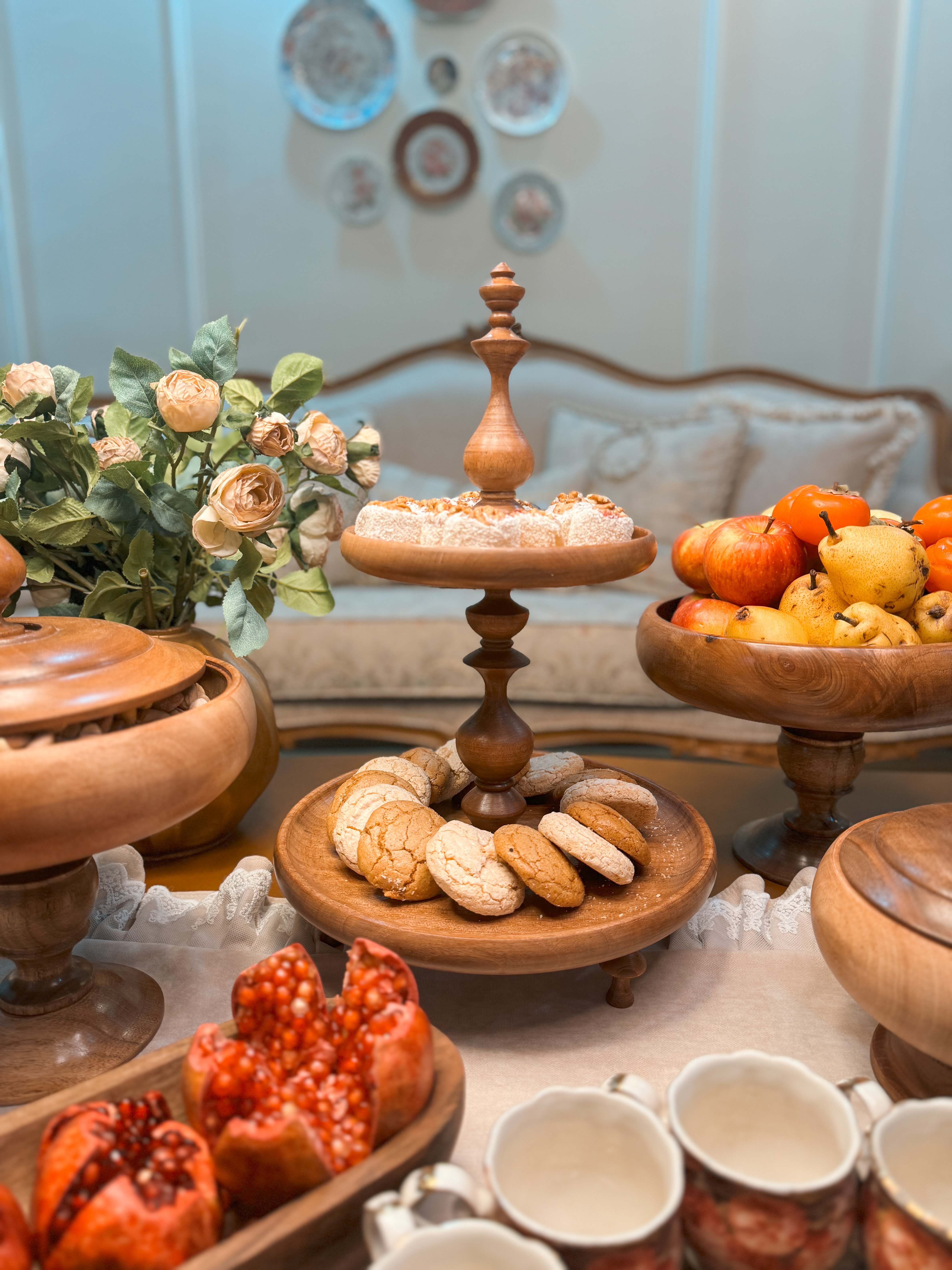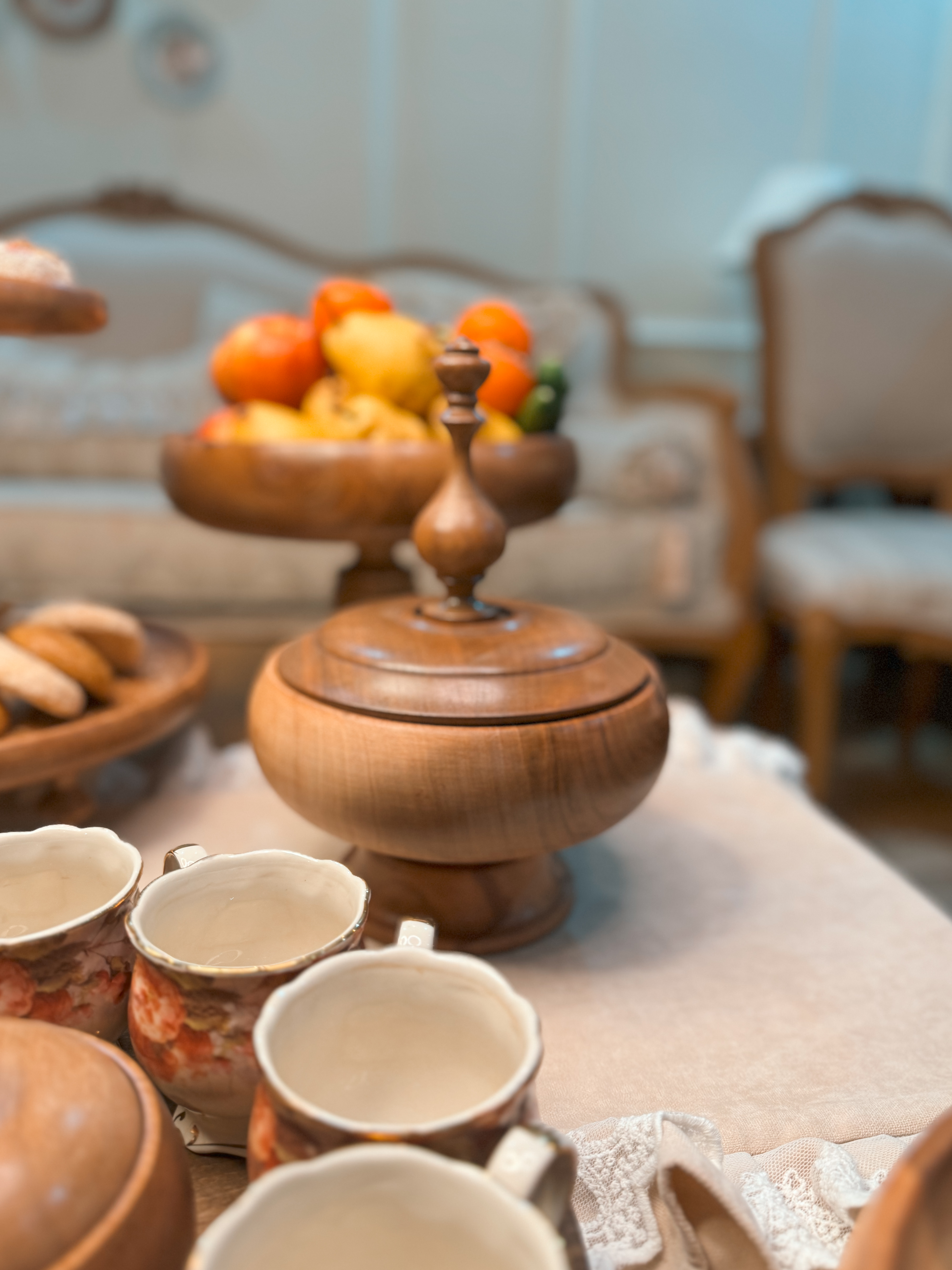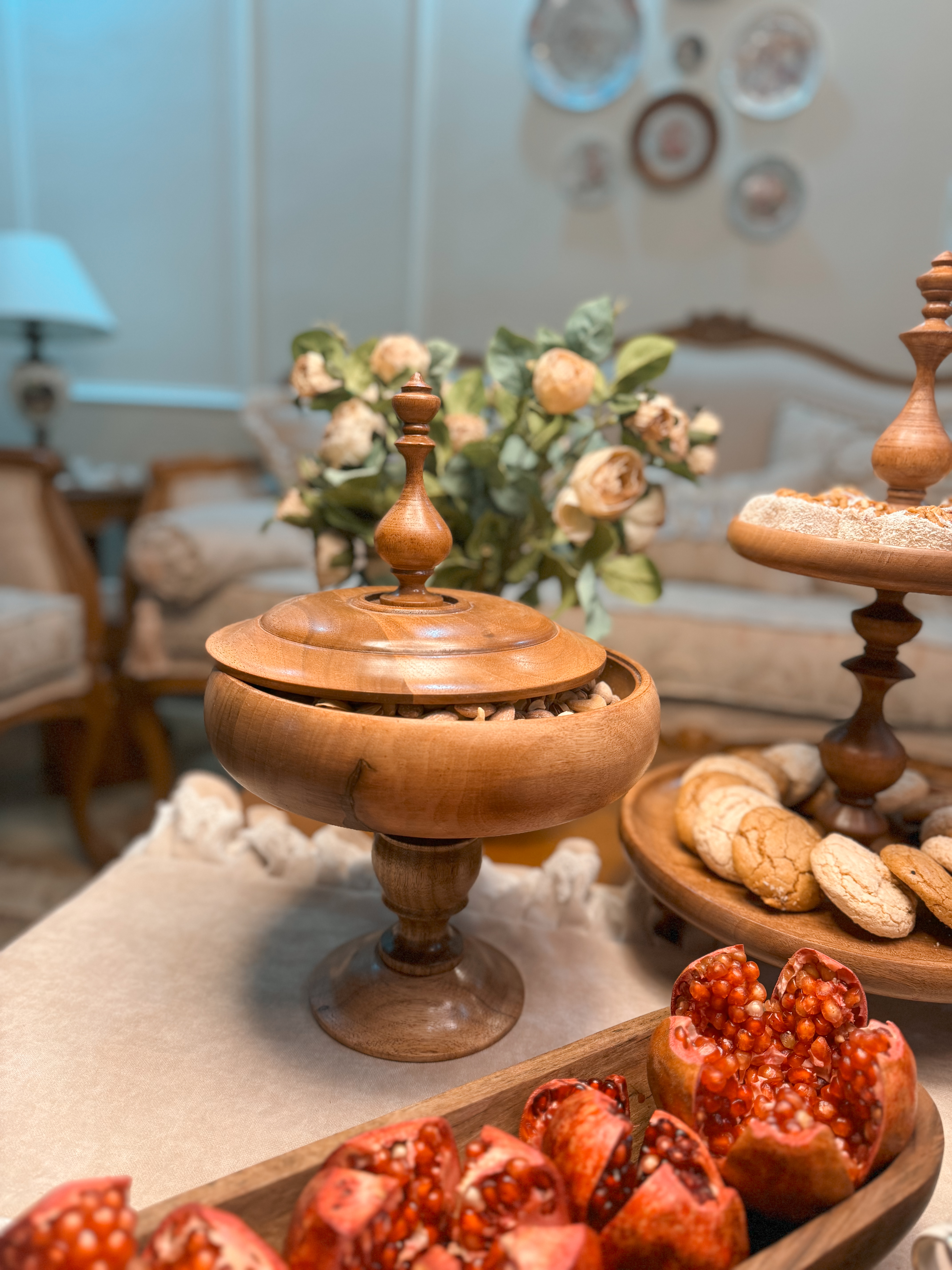 ساخته شده از چوب گردو با پوشش گیاهی و آب گریز می باشد. اجزا این سرویس تشکیل شده از : میوه خوری ۳۰ سانت آجیل خوری درب دار قطر ۲۵ سانتیمتر و یک عدد شکلات خوری درب دار قطر ۲۰ و استند دو طبقه ۲۳/۳۰سانتیمتر ویک عدد سینی چای به قطر ۳۰ سانتیمتر به همراه یک قندان و یک عدد کشکول با کاربردهای فراوان ،شش عدد پیاله وشش عدد پیش دستی به همراه یک عدد قاشق آجیل می باشد 📍تفاوت رنگ در محصولات چوبی ماچوب یک متریال طبیعی و زنده است که دارای بافتها، رگهها و گرههای منحصربهفردیست. این ویژگیها باعث میشود هر قطعه چوب، رنگ و طرح خاص خود را داشته باشد و در نتیجه، ظروف چوبی ما نیز ممکن است تفاوتهایی در رنگ و بافت نسبت به یکدیگر داشته باشند؛این تفاوت بیشتر نمود پیدا میکند.برای شفافیت بیشتر، تصاویر واقعی و بدون ویرایش تمامی سفارشهای آماده ارسال، در صفحه دوم اینستاگراممان (@kajanchoob2) قرار داده شدهاند تا بتوانید نمای دقیقتری از تنوع طبیعی محصولات داشته باشید.امیدواریم مشاهده این تصاویر، شما را در انتخاب بهتر یاری کند.