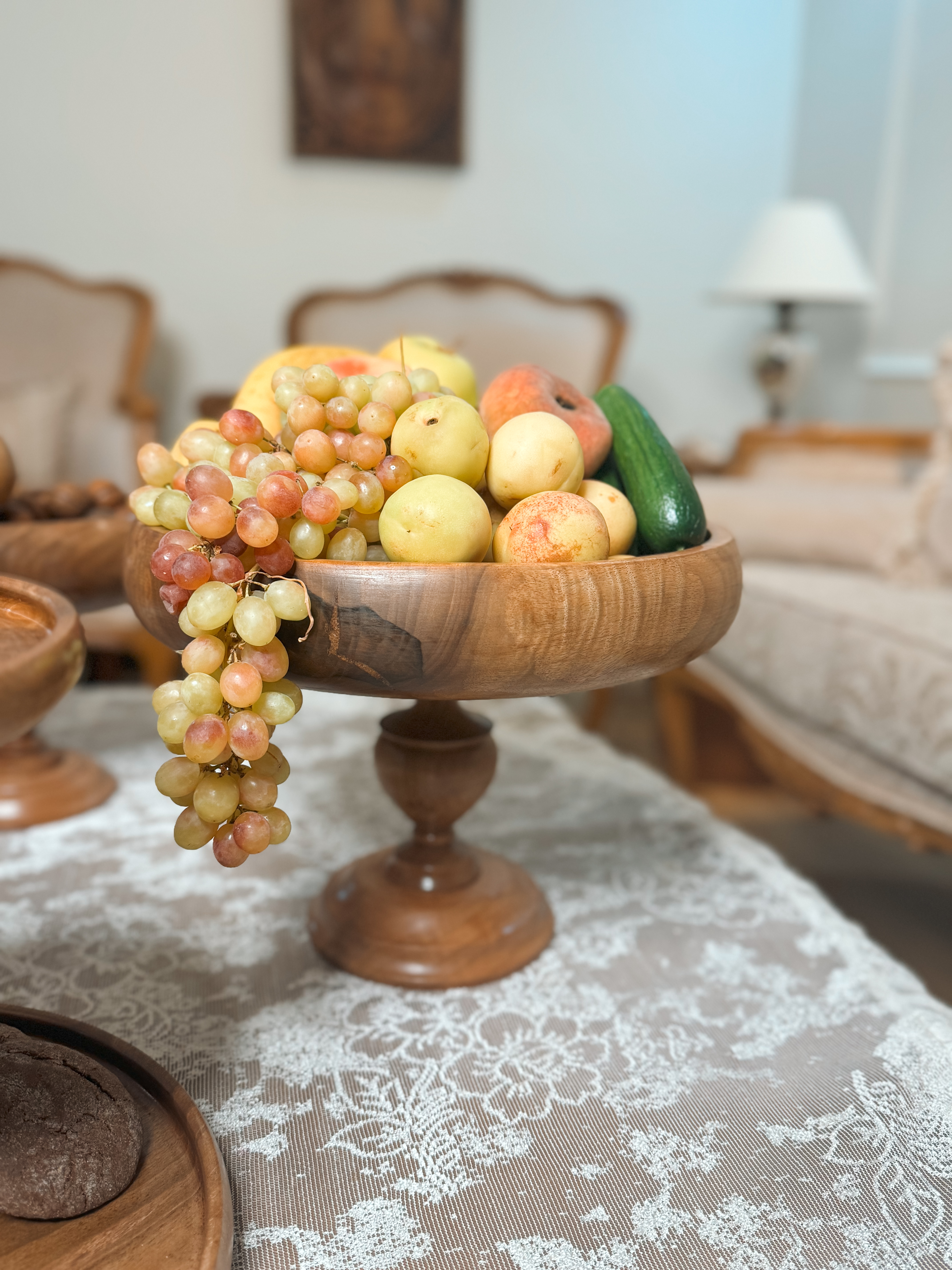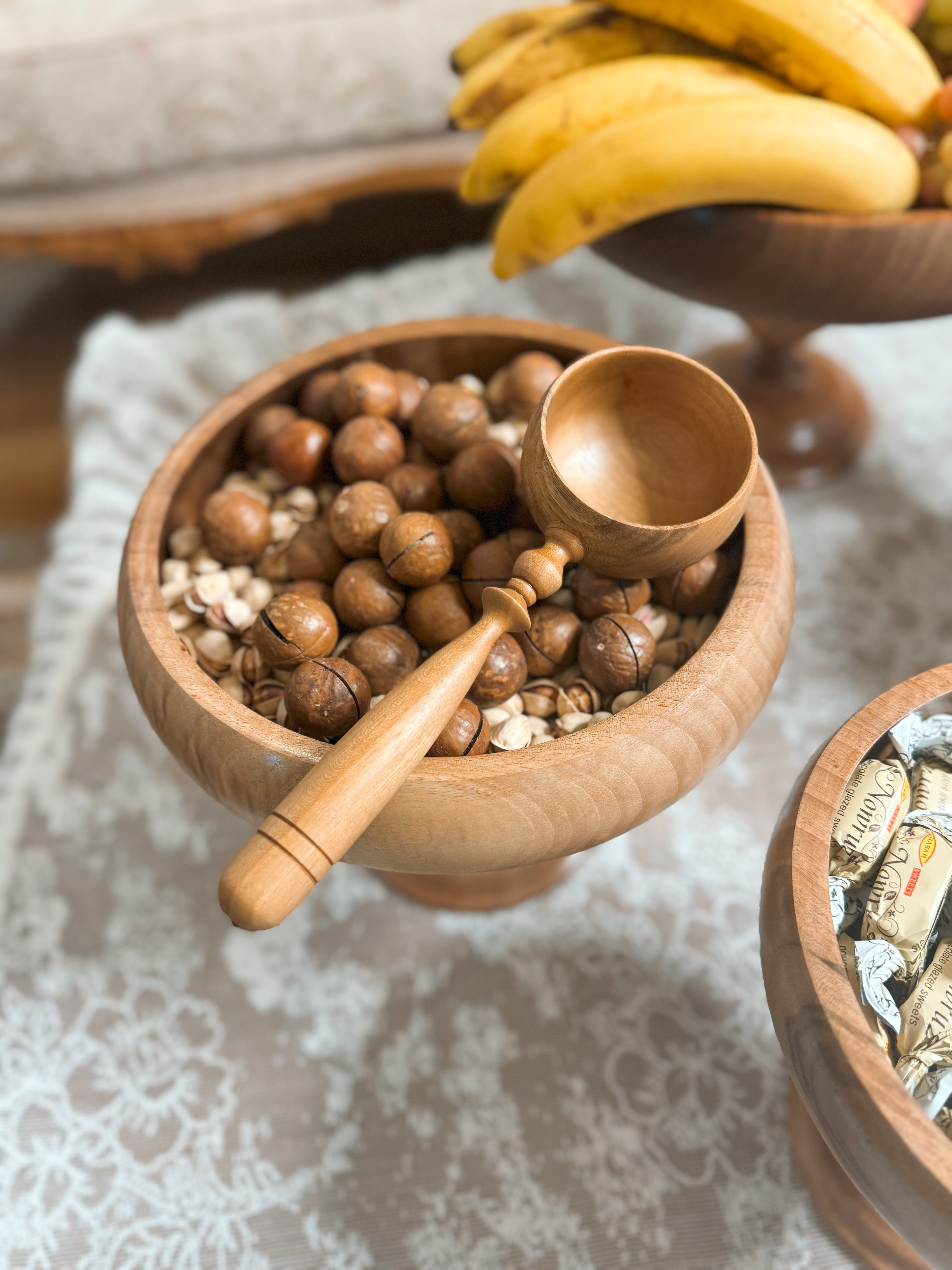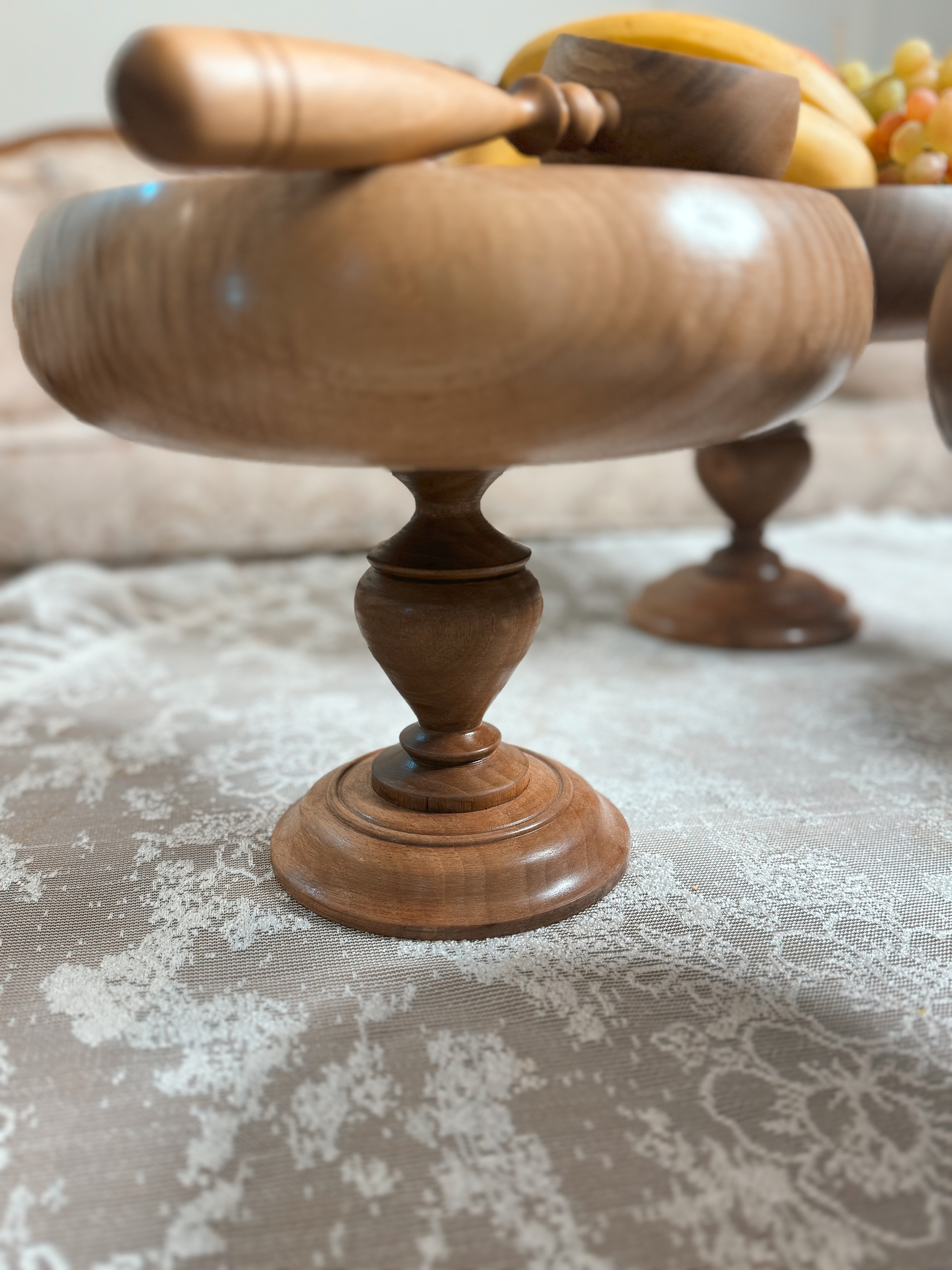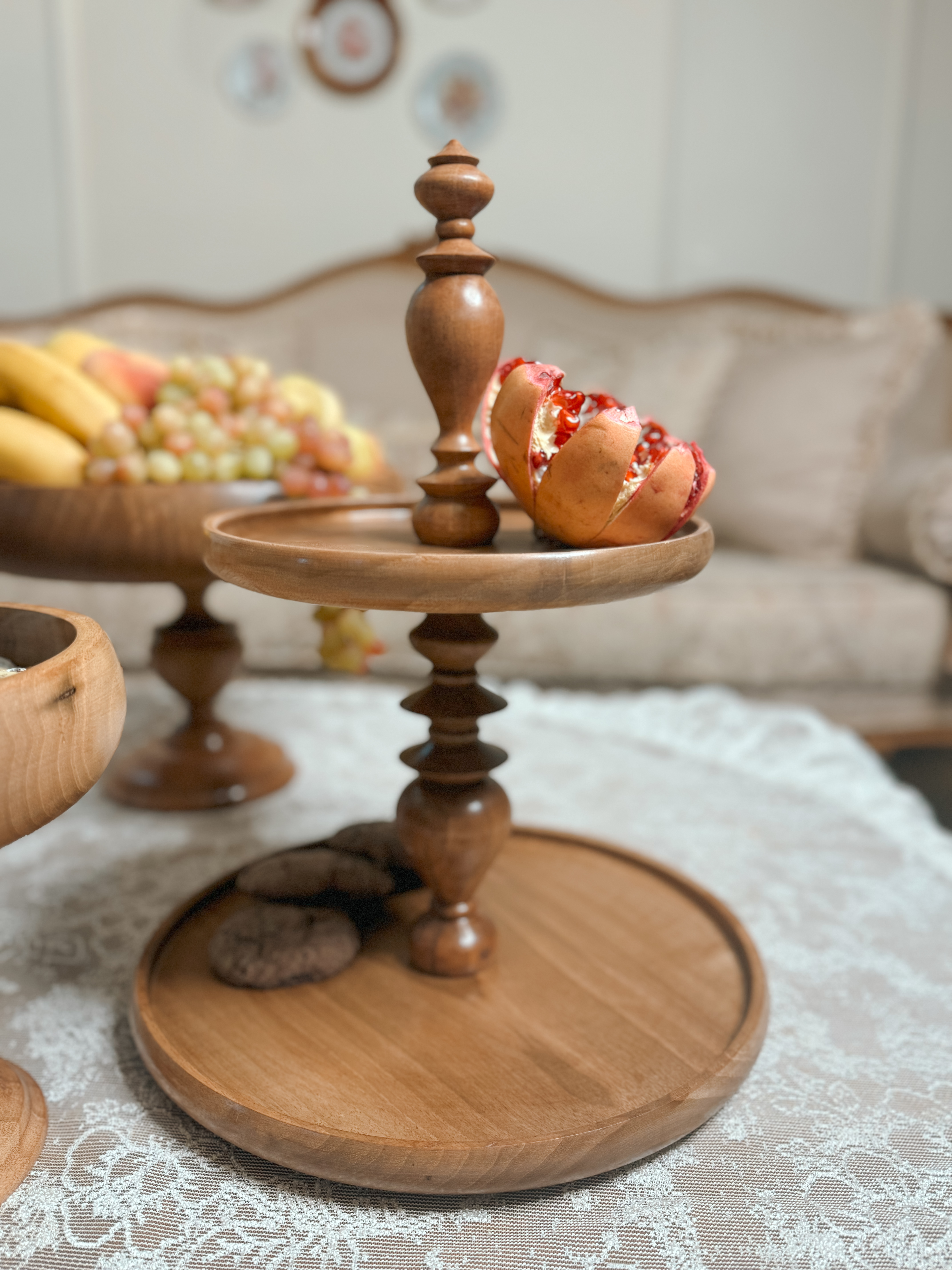 ساخته شده از چوب گردو با پوشش گیاهی و قابل شستشو اجزا سرویس تشکیل شده از میوه خوری ۳۰سانتیمتر آجیل خوری ۲۵ سانتیمتر،شکلات خوری ۲۰سانتیمتر ، و استند دو طبقه ۲۳/۳۰سانتیمتر و یک عدد قاشق آجیل می باشد.تمامی پایه ها مونتاژی می باشند و شما با پایه و بدون پایه میتونید سفارش بدید