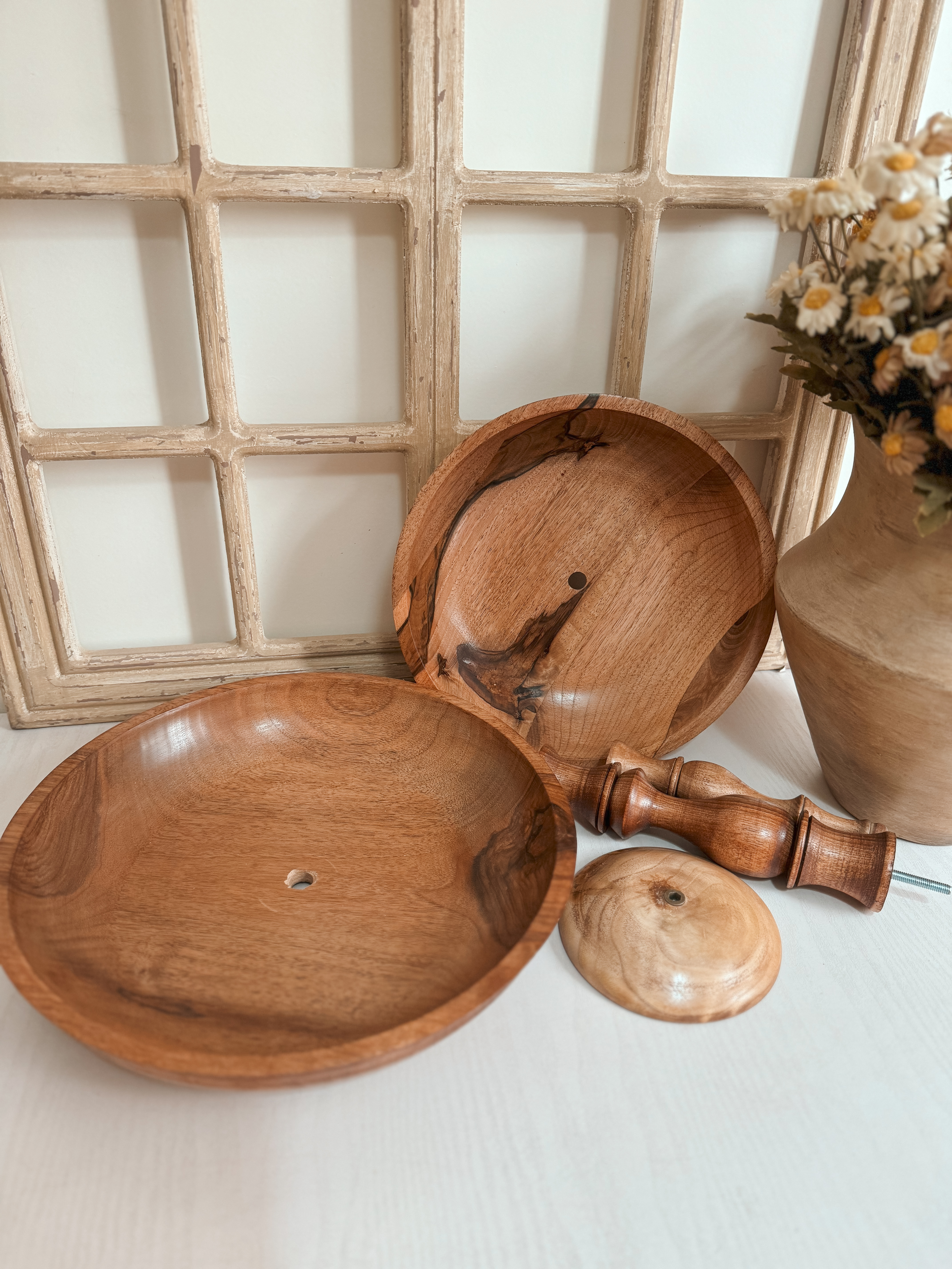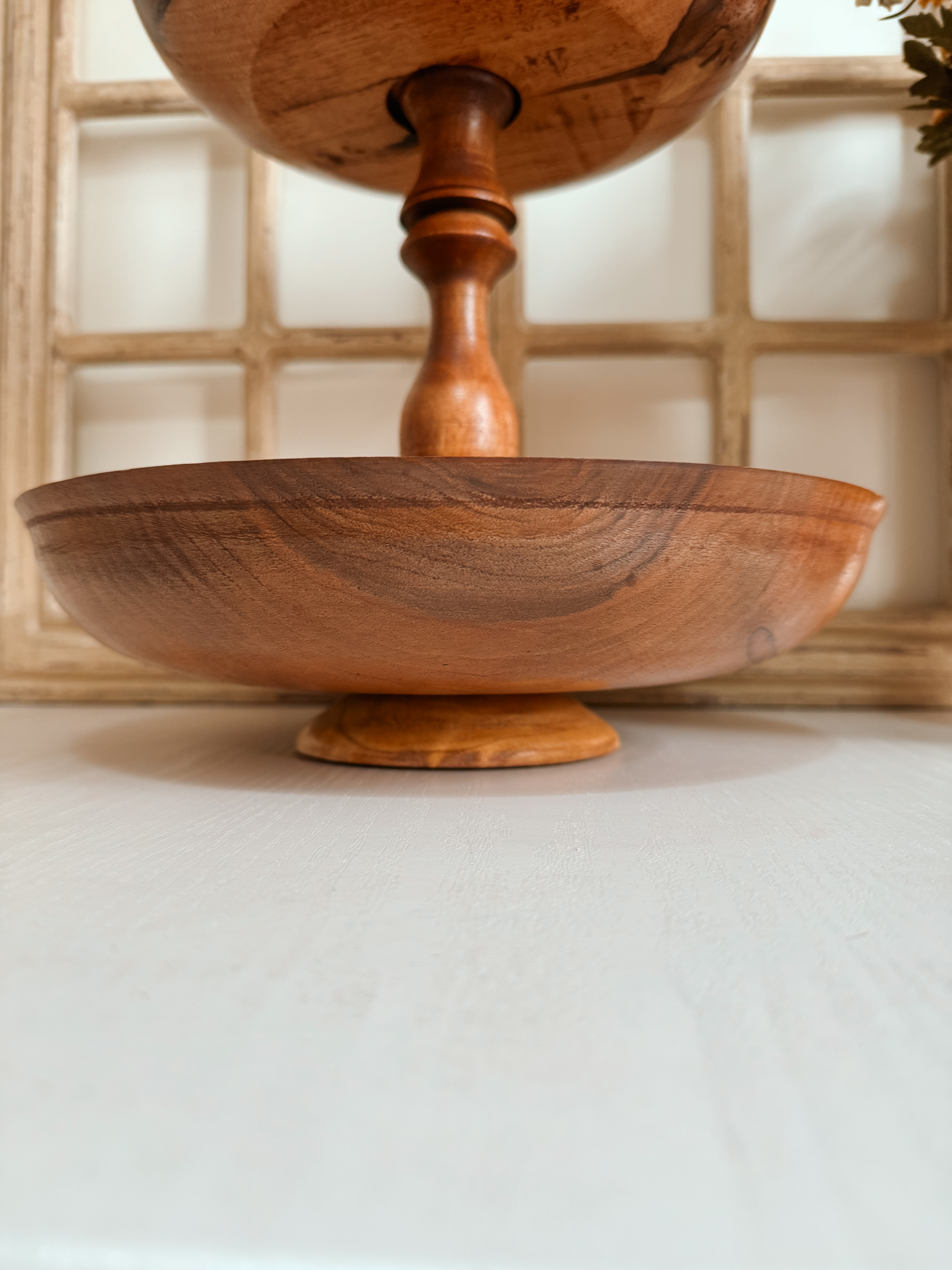 میوه خوری دوطبقه ساخته شده از چوب خوش نقش و مقاوم گردو با پوشش گیاهی و آب گریز می باشد دارای دو کاسه با قطر های ۲۵و ۳۰ سانتیمتر می باشد.این کار مونتاژی می باشد هم به صورت دو حالت دو طبقه و یا دوتا کاسه تک می شه استفاده کرد